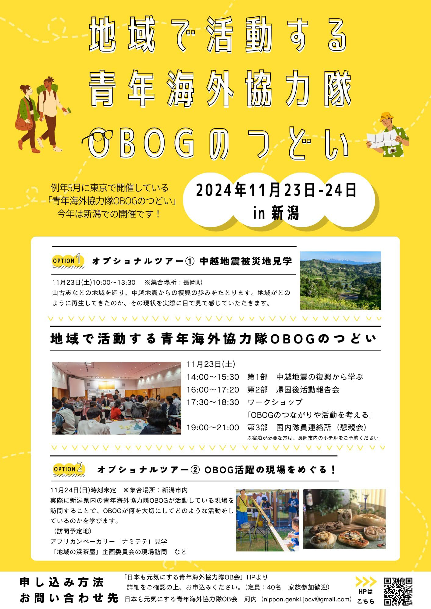 また、今年で20周年を迎える中越地震の復興支援において、協力隊の経験がどのように役立ったかも振り返ります。