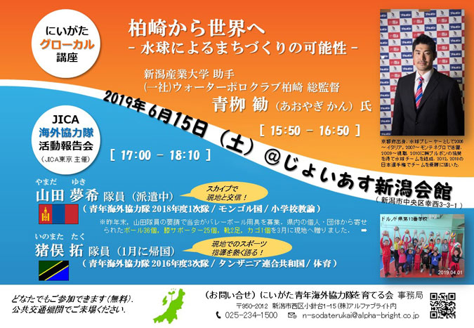 公開イベントのお知らせ(にいがたグローカル講座/JICA海外協力隊活動報告会) - 2019.05.17