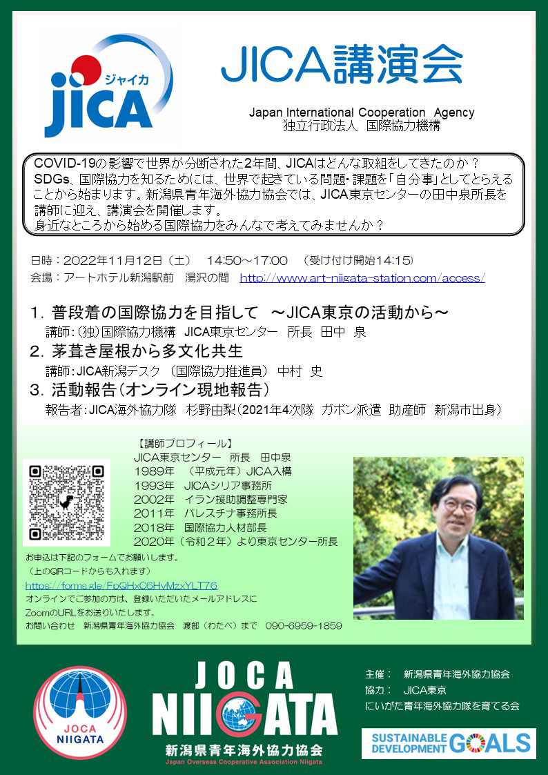 長岡市大手通2-6 フェニックス大手イースト2階内容:JICAボランティア事業