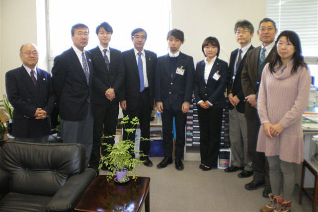 ※写真(新潟県庁表敬) 前列左から、横山事務局長、石垣さん、山田さん、佐久間豊知事政策局長、竹内さん、細井さん