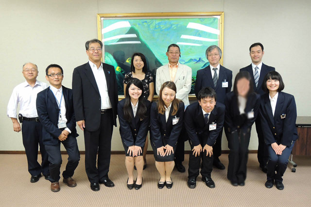 派遣前訓練を終え、6月下旬に本県から任国へ発つJICAボランティア・平成26年度1次隊(青年海外協力隊6人/シニア海外ボランティア3人)が6月23日(月)、新潟県庁(知事政策局国際課・山口良信国際企画監)と新潟県国際交流協会を表敬訪問しました。県庁では表敬には当会と新潟県青年海外協力協会(JICAボランティアの本県OB/OG会)からそれぞれの代表が同伴し、当会からは横山事務局長が同行しました。