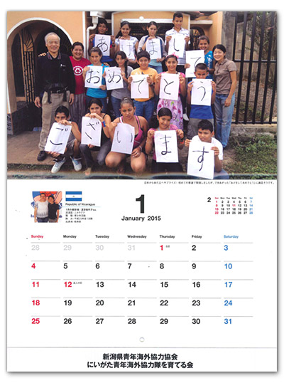 このカレンダーに、当会と新潟県青年海外協力協会の名を併記し、共同で販売を致します。ご希望の方は、当会事務局までご連絡下さい。